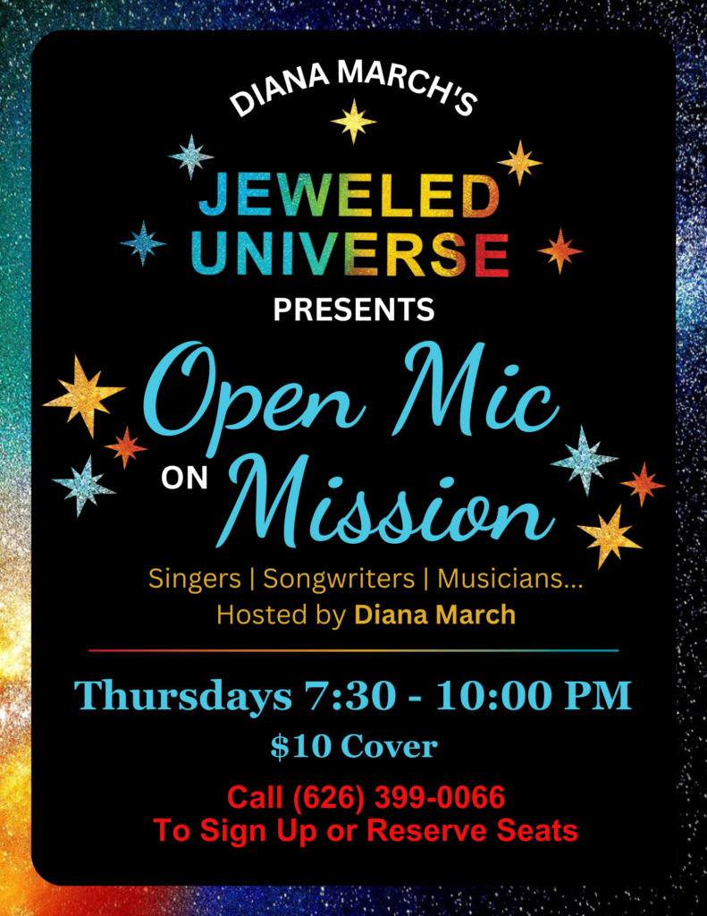 Prepare 1 – 2 songs, bring sheet music in your key, and prepare to have fun on our magical Starlit Stage!
